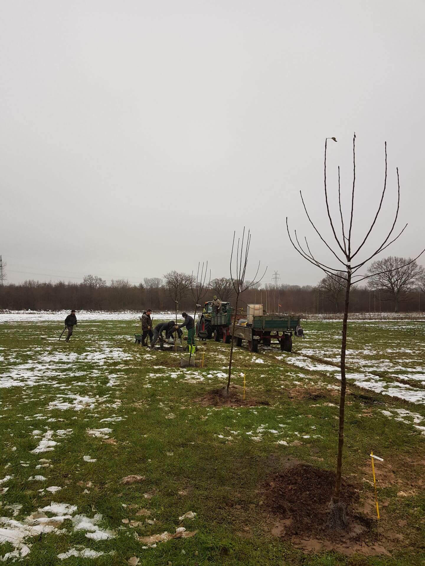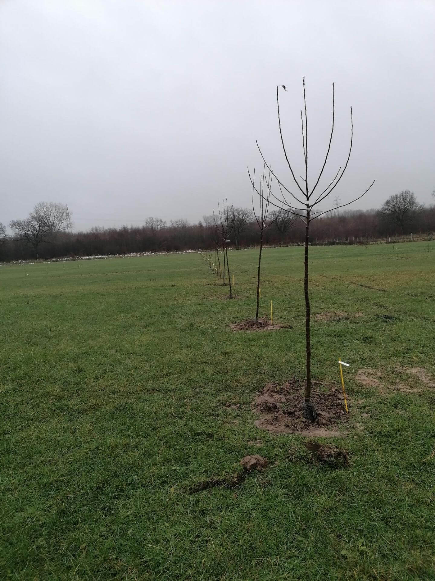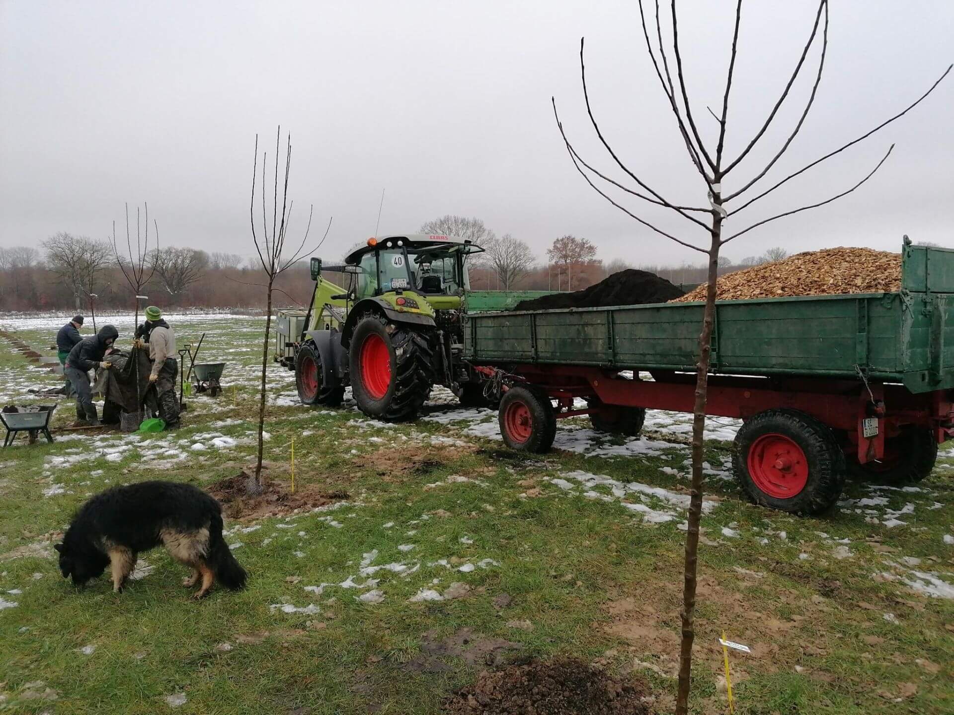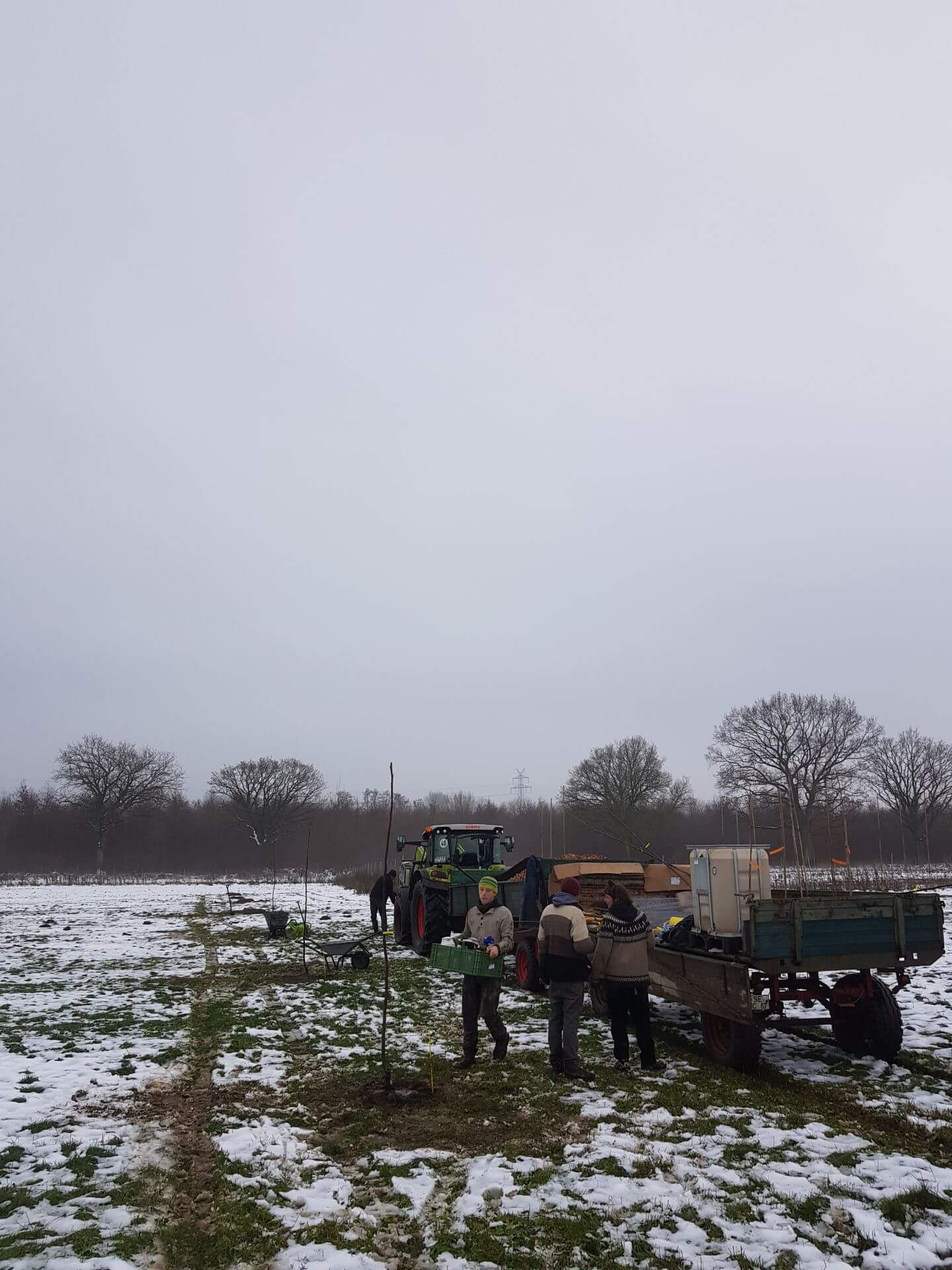 The planting took place in December 2023 and a person from the Triebwerk planning office was also present to provide support and advice. The majority of the trees have grown well. There were large-scale failures in the almonds, but these are being replaced by the supplier.