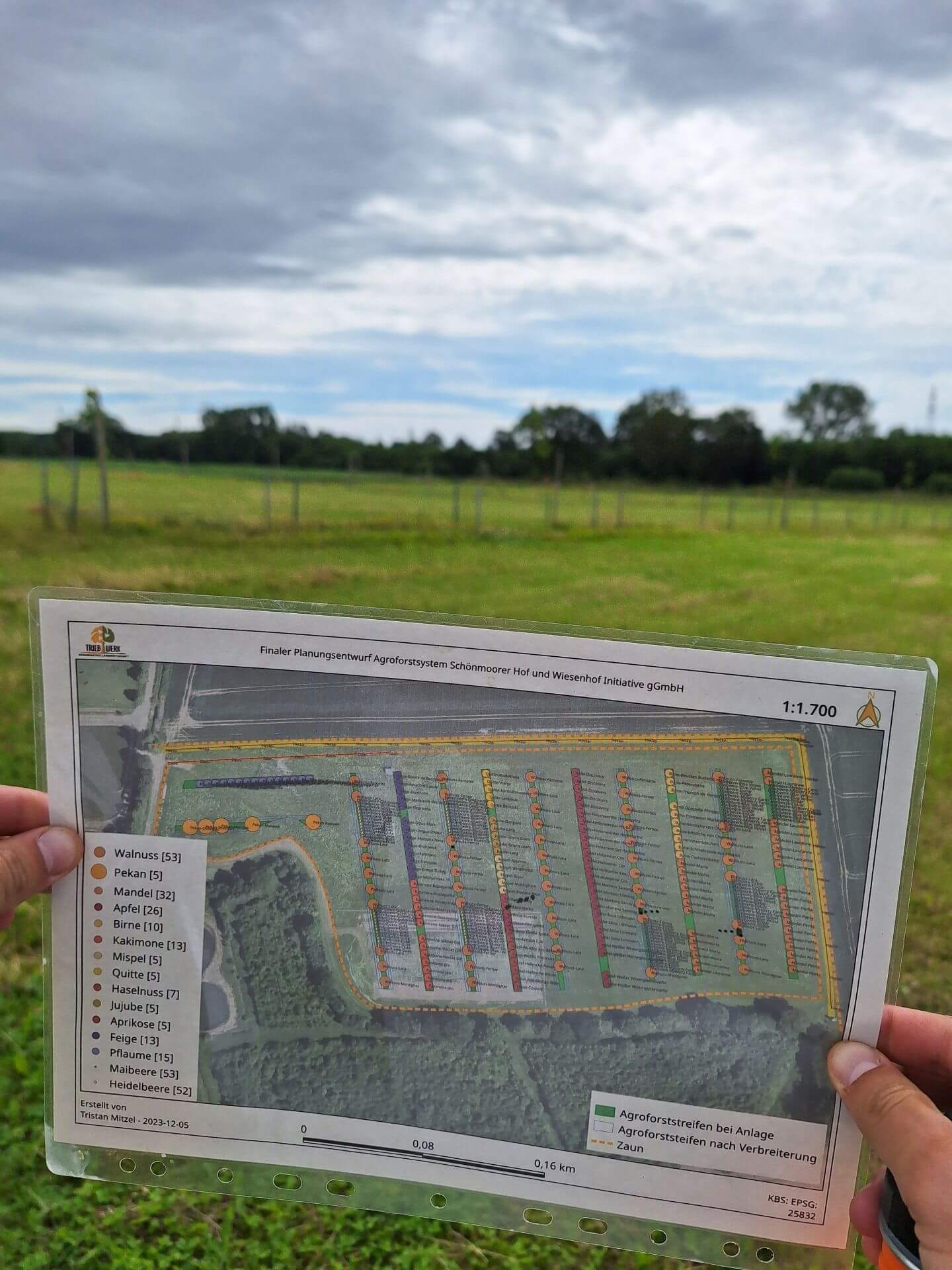 The system, planted on approx. 6.5 ha, consists of a diverse plant selection of around 300 woody plants in order to test many different crops in combination: