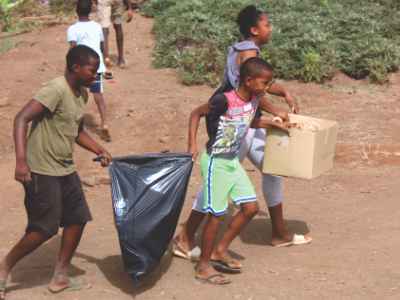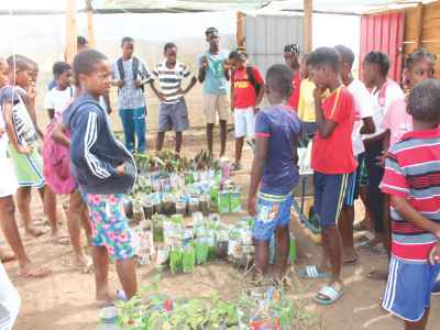 In order to generate a sustainable effect, it is important to motivate and involve locals. At events taking place twice per year, trees are planted together with the community of Tarrafal to counteract the spread of acacia by planting native species. In addition, educational events are held four times a year to address the topic of climate change and highlight the importance of trees. The event is always held along with the planting of trees and the display of educational videos. On top of that, the Batuco group Delta Cultura ensures a good atmosphere with lots of drumming, dancing and singing. Already, the population is enthusiastically helping out and collecting old milk cartons to turn into growing containers for the tree nursery.