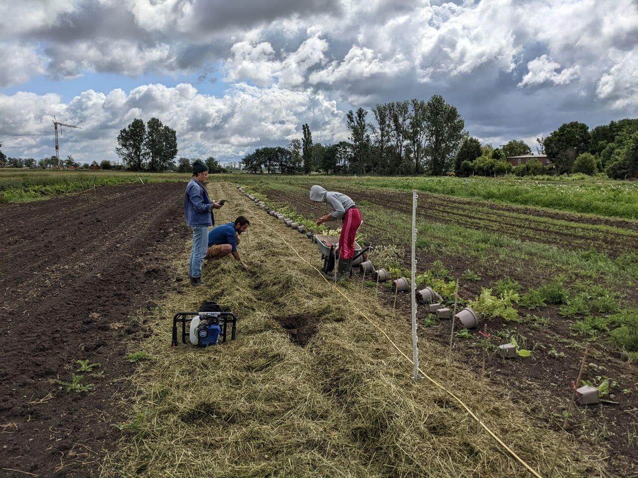 In addition to the hedge beds, a catch crop mix (insect paradise) was planted to become an attractive site for insects due to its diversity. A fence was erected as protection against browsing before planting. The hedges were irrigated several times with a drip irrigation system in the following weeks.